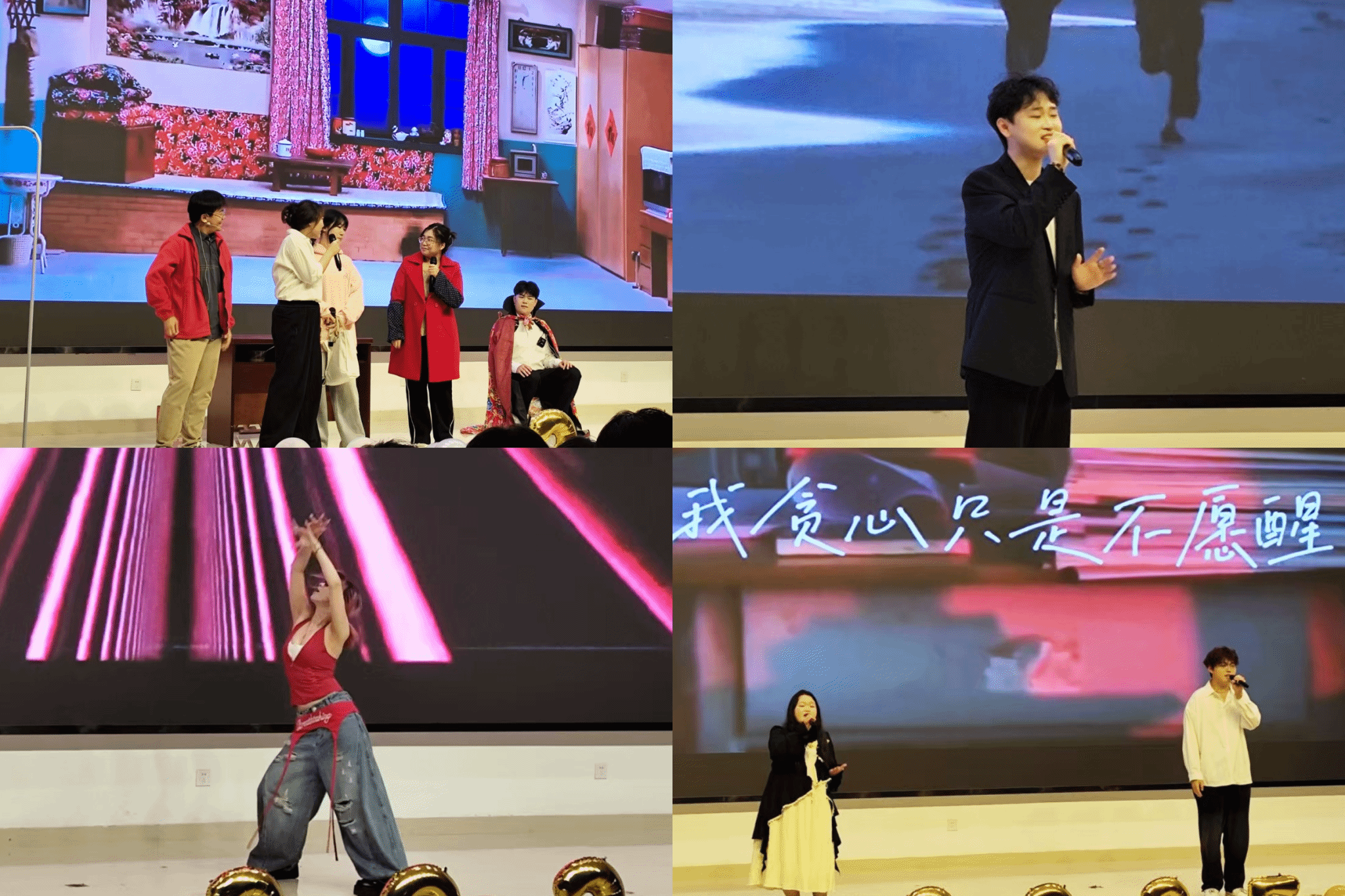 老员工艺术表演团带来的小品《德古拉与我》以别具一格的接地气表演,赢得了现场观众的阵阵欢笑。在独唱《挚友》中,辛伟同学用柔缓的歌声表达了对友情的珍视。丁菁菁同学的节目《like Jennie》则以酷炫的舞姿,再次点燃了现场的激情。合唱《岁月神偷》以其深情的旋律和歌词,让在场的每一个人都感受到了时间的宝贵和青春的无悔。