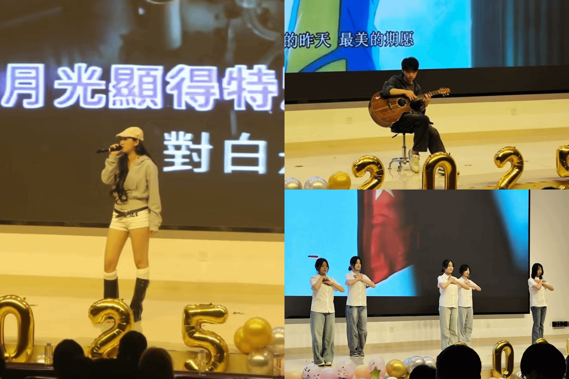 丁菁菁、林东妮、陈珂馨、李子英和段妤婕五位同学带来《smart》舞蹈表演点燃了现场的热情。白阳同学的独唱《爱要坦荡荡》,祝愿大家在今后的人生中敢于直面自己。蒲公英舞蹈队带来的舞蹈《有我》以轻柔有力的动作展现了青年学子的担当与力量。张子涧同学的吉他演奏《secret base》以其悠扬的旋律引导同学们沉浸在美好的回忆中。