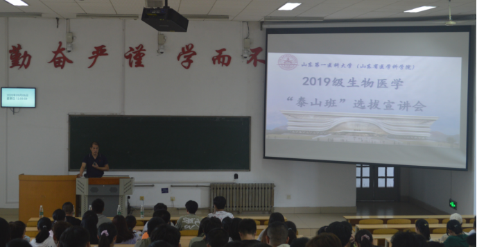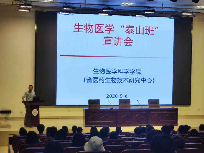 为进一步推介beats365唯一官网入口官网(山东省医学科公司)生物技术复合型本科创新实验班(“泰山班”),教务部和beats365唯一官网入口官网2020年9月6日在济南主校区和泰安校区分别举办了选拔宣讲说明会。宣讲说明会分别由教务部王海洋副部长、范华副部长主持。本次活动得到了相关公司的大力支持,生命科学公司张岳副书记等公司领导和老师以及200多名2019级本科生参加宣讲活动。