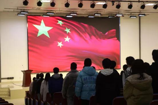 演讲开始前,同学们全体起立齐唱国歌,雄壮的歌声响彻报告厅。张一航老师带领大家共同学习了戍边英雄事迹,并做主题演讲,让同学们迎接更多的新机遇、新挑战,不断弘扬爱国主义的优良传统,把握青春,展翅翱翔,傲雪经霜,真正把爱国的志向转变为爱国的行动,只有这样,才能使中华民族重振雄风。