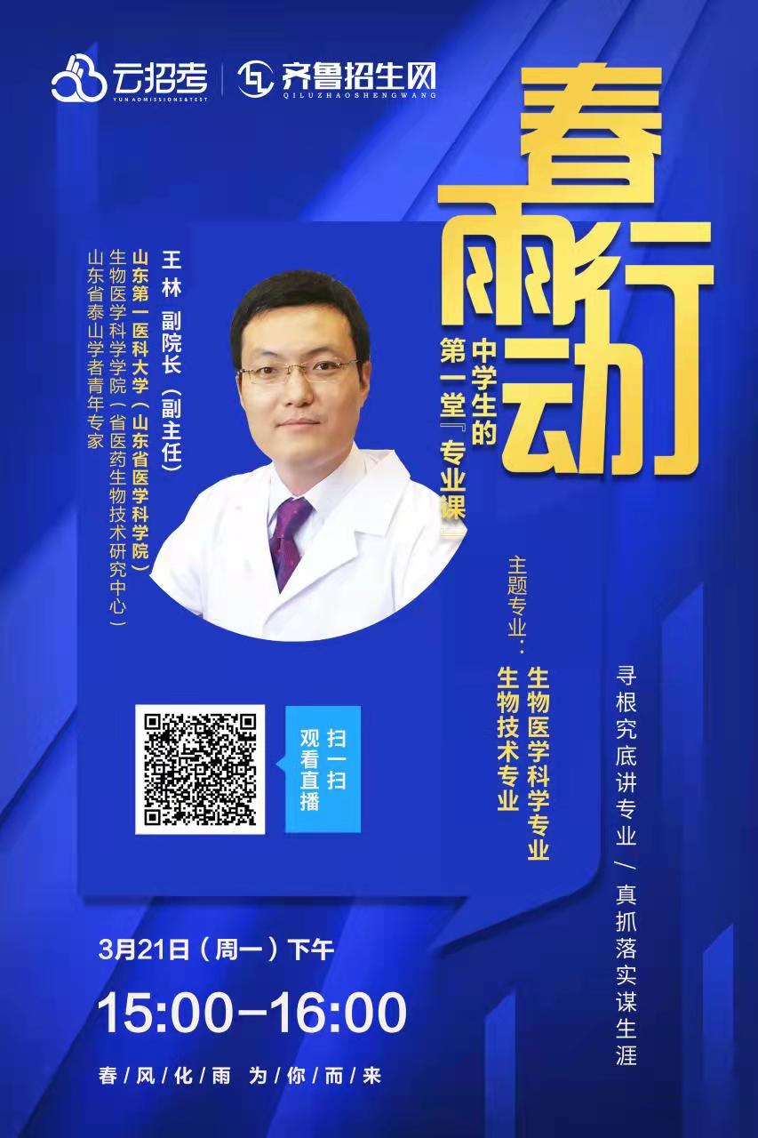 3月21日下午15:00-16:00,beats365唯一官网入口官网(山东省医学科公司)beats365唯一官网入口官网副经理、山东省泰山学者青年专家王林教授和您一起揭开生物医学的神秘面纱,探究生物医学科学和生物技术专业的奥秘!不见不散!