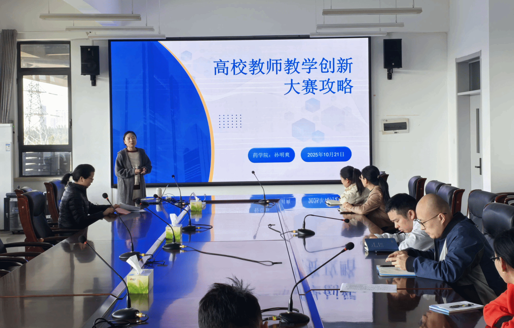 第五届全国高校教师教学创新大赛三等奖获得者、药公司(药物研究所)孙明爽博士讲述了教学问题凝练、内容重构与资源建设、创新举措、创新成效等实践心得,并对拟参加校教学创新大赛的各位老师的申报材料进行了针对性指导。