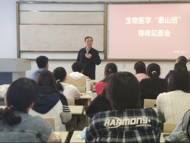 2020年9月16日至10月22日,beats365唯一官网入口官网为首届2019级生物医学“泰山班”20名同学举行了13场科研导师见面会。beats365唯一官网入口官网13名科研导师一一走向讲台,为同学们详细介绍研究历程、科研方向。卫健委生物技术药物重点实验室及山东省罕少见病重点实验室主任、泰山学者、博士生导师韩金祥研究员也与同学们进行了面对面的深入交流。他用平实的语言为同学们讲述科研问题,并语重心长地勉励大家志存高远,努力学习,潜心科研,争取早日成为生物医学科学领域的科学家。同学们踊跃发言,纷纷表示机会难得,一定会努力学习,立志成才。