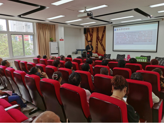科普讲座总体分为三个模块,由齐兆江同学担任主讲。第一个模块围绕当代老年人最关心的养老保险制度进行扩展。主要从基本养老保险、个人储蓄性养老保险和企业补充养老保险的特点来进行讲解,得到老年人的高度关注;第二个模块则是围绕包括看病难、老年孤独以及失能、老人走失等困扰老年人生活的问题进行讲解,并提出了解决办法,得到了听众的广泛认可;第三个模块是现场知识竞答,包含十个问题,均是依据以上两个模块进行,现场听众积极参与,气氛达到高潮。